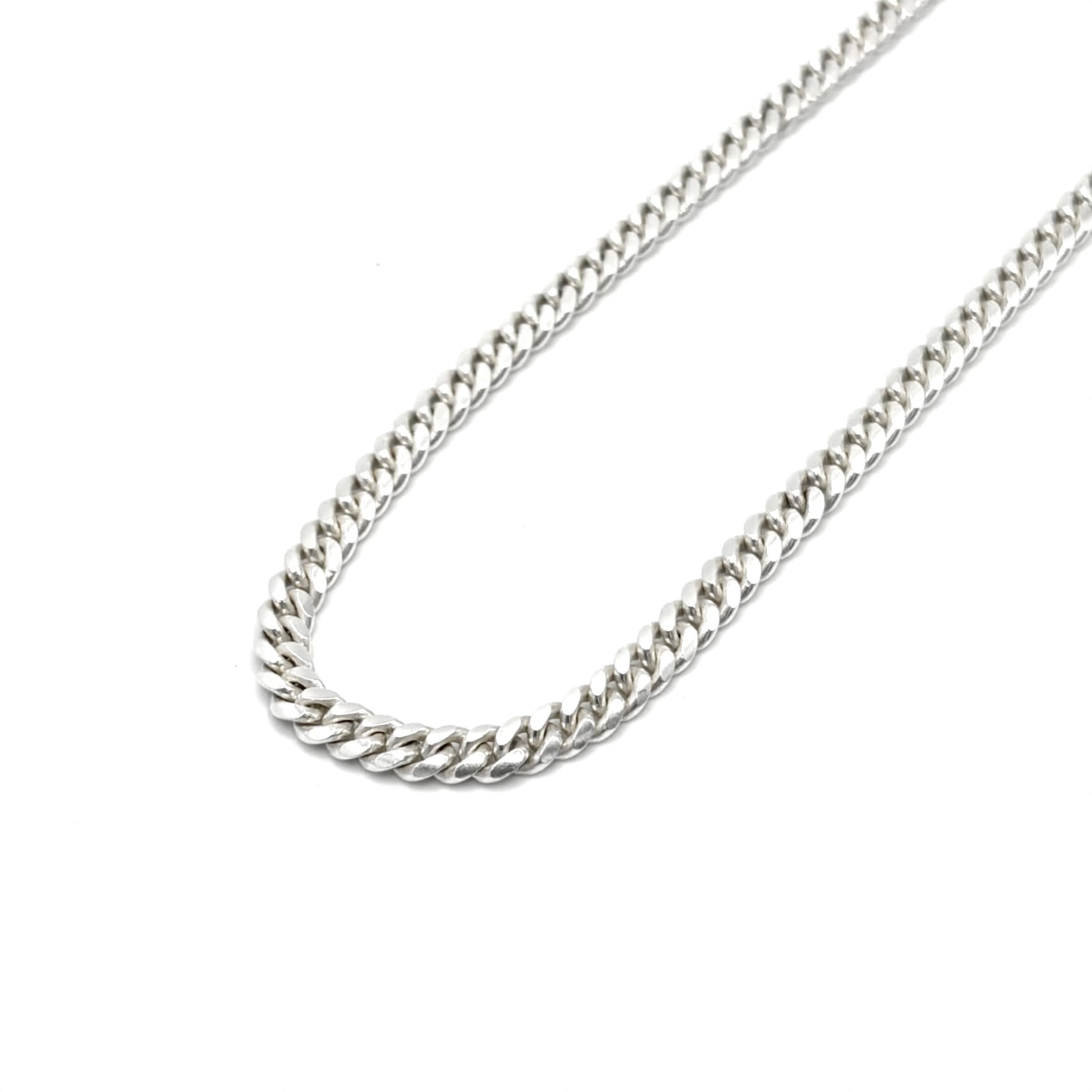 A 4mm Cuban chain with a lobster claw clasp.