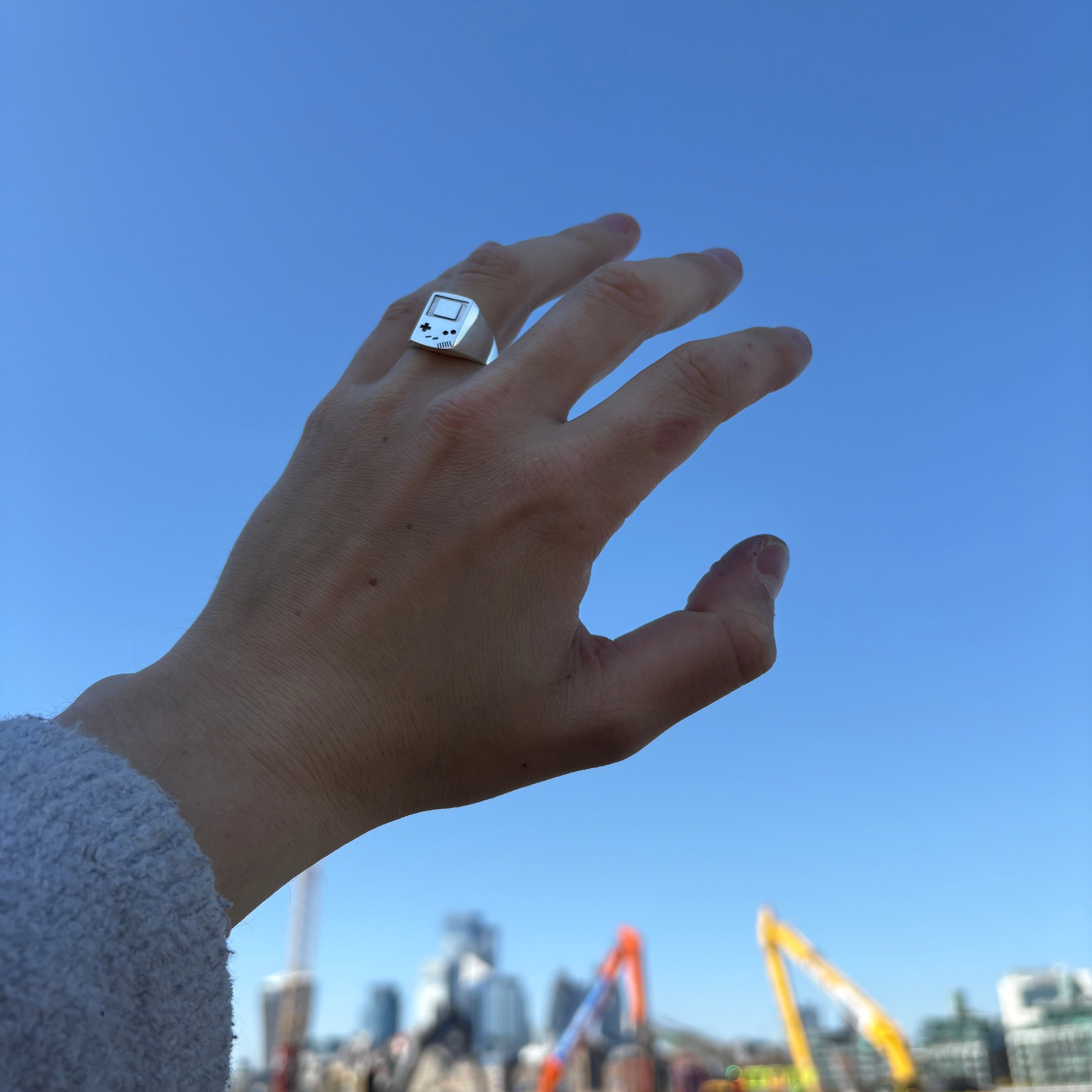 Image of Sam Ozanne Design's Silver Gameboy Ring on Hand