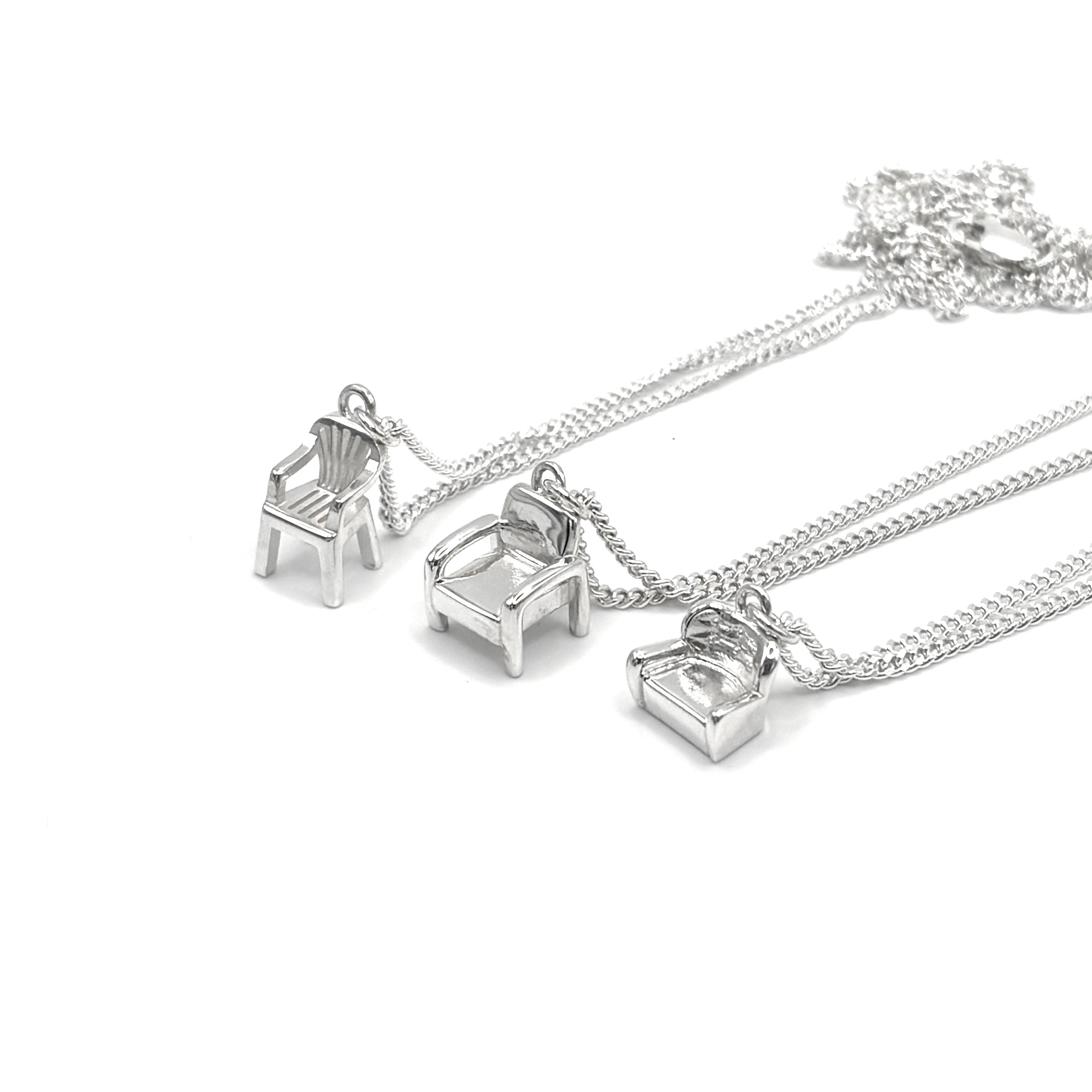Take a seat! I've recently had the honor of collaborating with chair lover & enthusiast Charlie Rose, working together to create a small collection of tiny silver chairs to wear around your neck, alongside a limited run of lino prints.